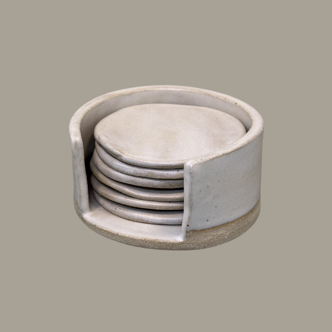 Set van 6 onderzetters in een houder.