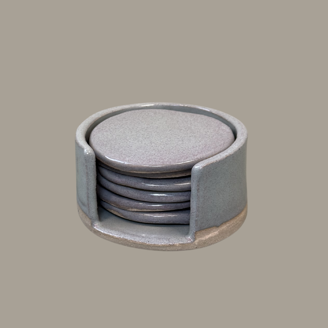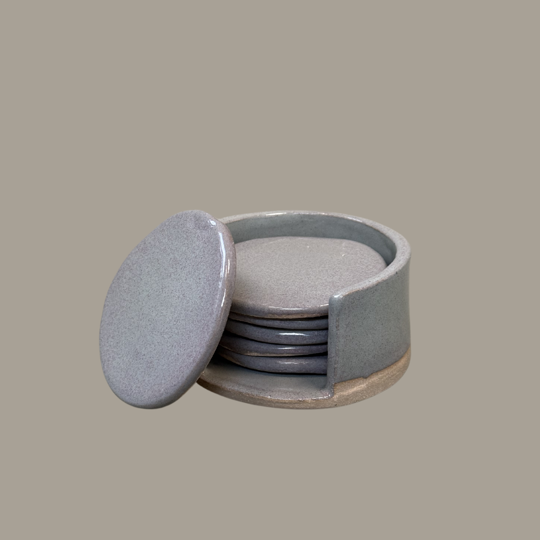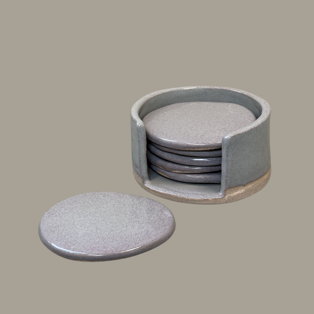 Set van 6 onderzetters in een houder.