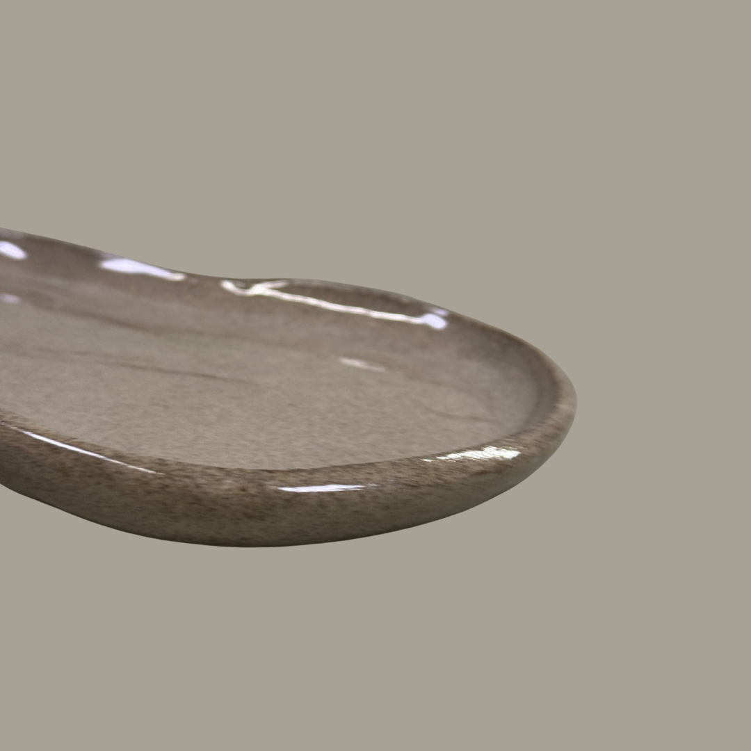 Een transparant glazuur dat de diepe, donkere klei benadrukt en een subtiele glans geeft, waardoor de natuurlijke textuur en kleur van het materiaal volledig tot zijn recht komen.